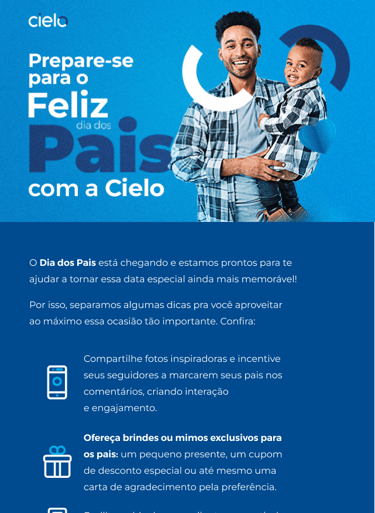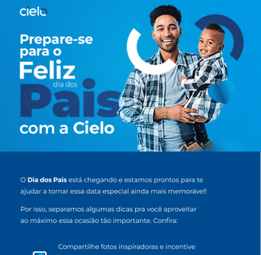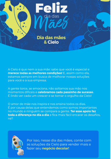 Na campanha, criamos comunicações que pudesse ser úteis no dia a dia do público da Cielo, os empreendedores. Em datas comemorativas, por exemplo, demos orientações de vendas e marketing afim de alavancar o lucro dos negócios dessa base.