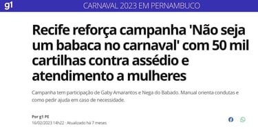 O principal foi o Manual de como não ser um babaca no carnaval, um material produzido anualmente no carnaval para prevenção de assédio e violência contra mulheres. Na edição de 2023 pude colaborar com a minha redação no manual que foi disponibilizado de forma digital e gráfica, com 50 mil exemplares distribuídos.