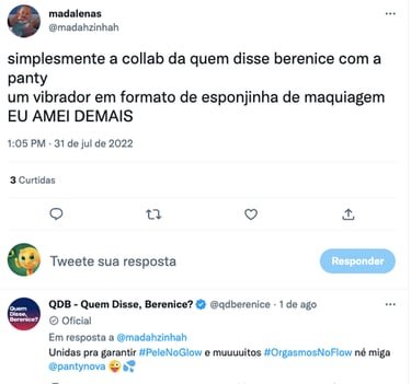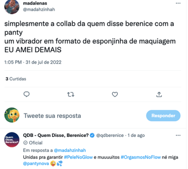 Minha atuação na campanha foi interagir com a comunidade de Quem Disse Berenice em mar aberto para incentivar as pessoas a conhecerem os produtos frutos dessa colab.