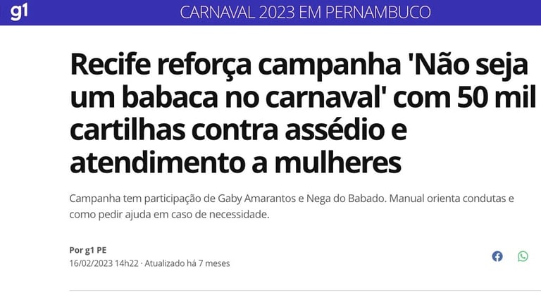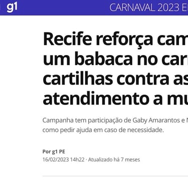 O principal foi o Manual de como não ser um babaca no carnaval, um material produzido anualmente no carnaval para prevenção de assédio e violência contra mulheres. Na edição de 2023 pude colaborar com a minha redação no manual que foi disponibilizado de forma digital e gráfica, com 50 mil exemplares distribuídos.